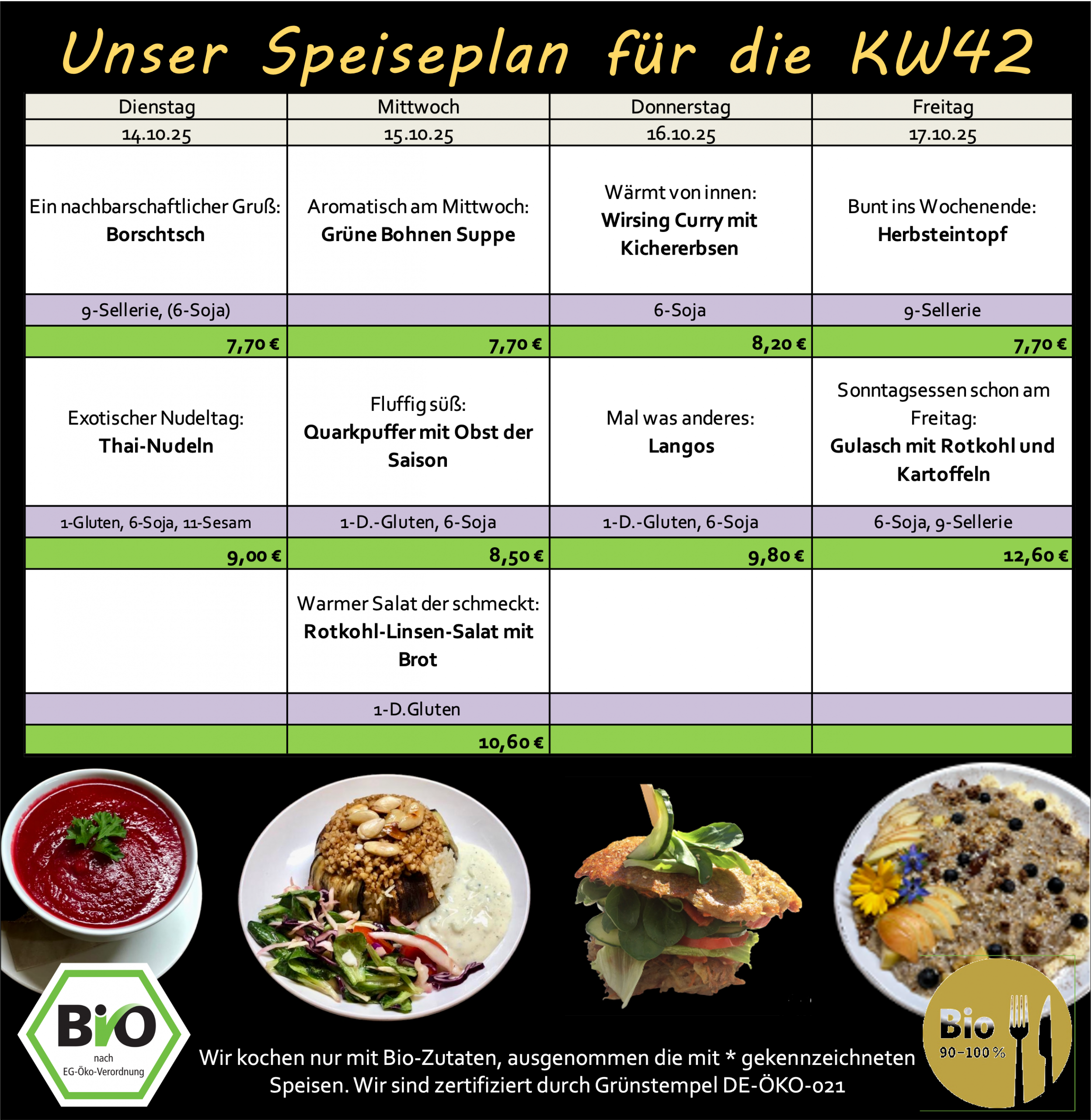 Unsere Gerichte kochen wir ausschließlich selbst – wir verwenden also keine Fertiggerichte. 99% der Zutaten sind aus BIO- oder DEMETER-Zertifizierten Anbau.