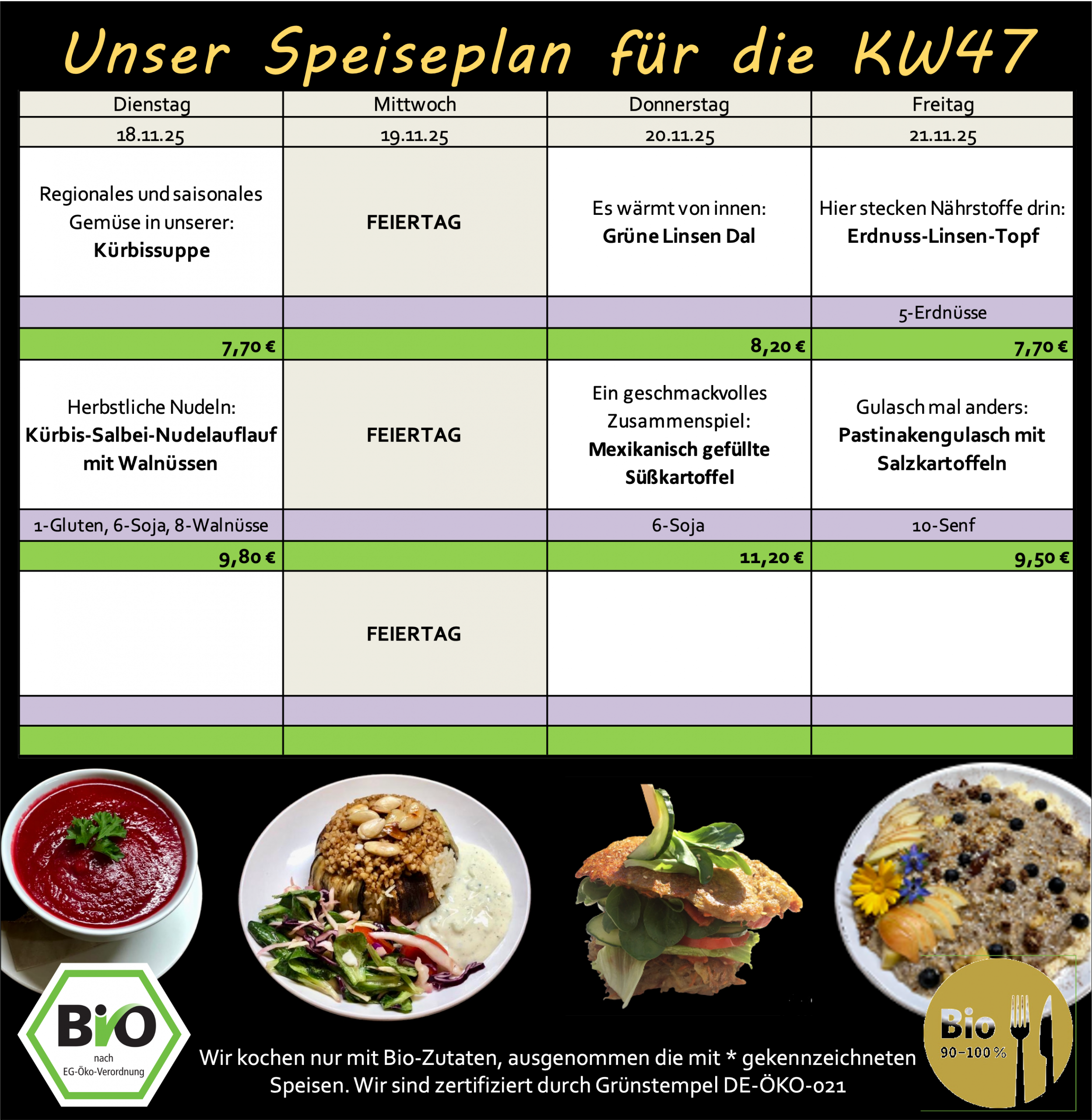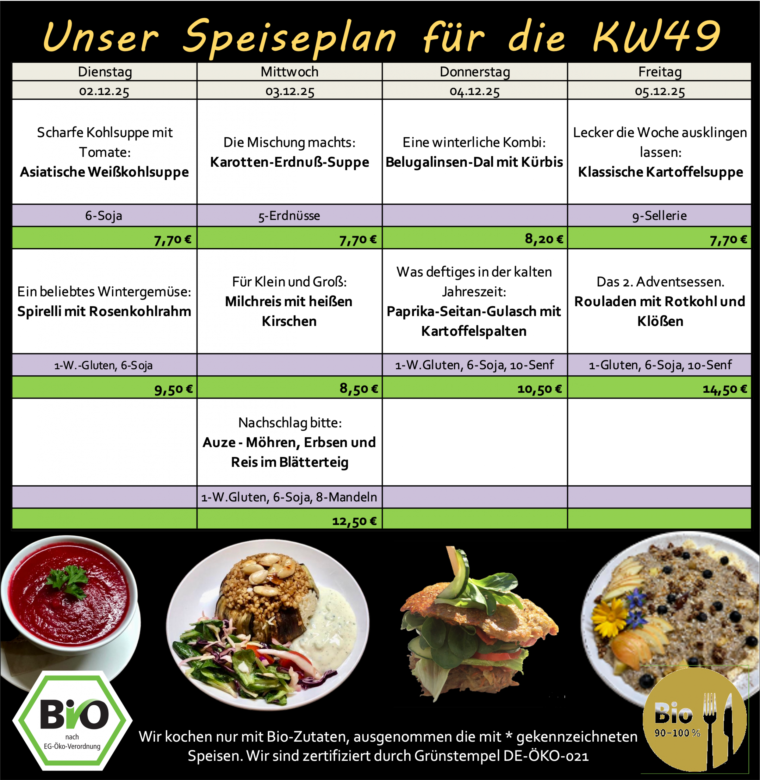 Unsere Gerichte kochen wir ausschließlich selbst – wir verwenden also keine Fertiggerichte. 99% der Zutaten sind aus BIO- oder DEMETER-Zertifizierten Anbau.